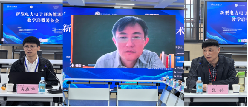 电气学院副院长黄海宏教授主持会议,教育部高等学校电气类专业教学指导委员会秘书长东南大学吴在军教授、中国电源学会直流电源专委会主任委员西安交通大学电气学院院长杨旭教授(线上)、中国电源学会新能源电能变换专委会主任委员快看漫画